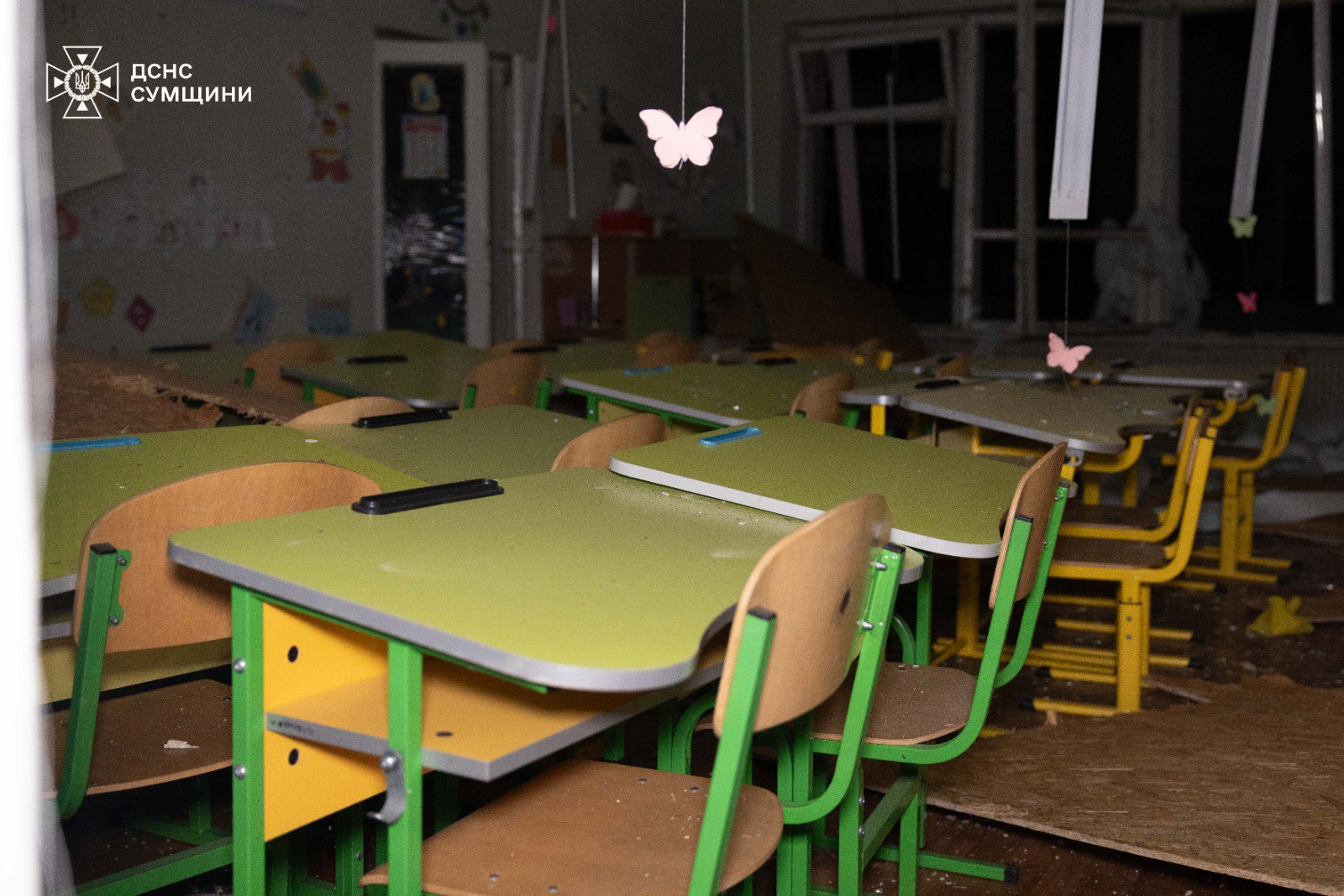 В ночь на 22 сентября российские войска нанесли серию ударов по Сумам, в результате чего возник пожар на промышленном объекте, а также было повреждено учебное заведение. Один человек получил травмы.