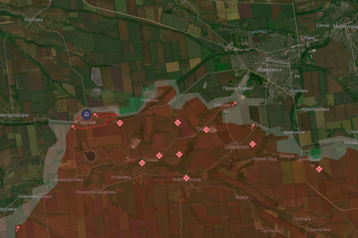 Россияне продвинулись вблизи Новоивановки (село в Гуляйпольской городской общине Пологовского района Запорожской области), Калиновского (село в Синельниковском районе Днепропетровской области) и в Удачном (поселок в Покровском районе Донецкой области), сообщили аналитики.