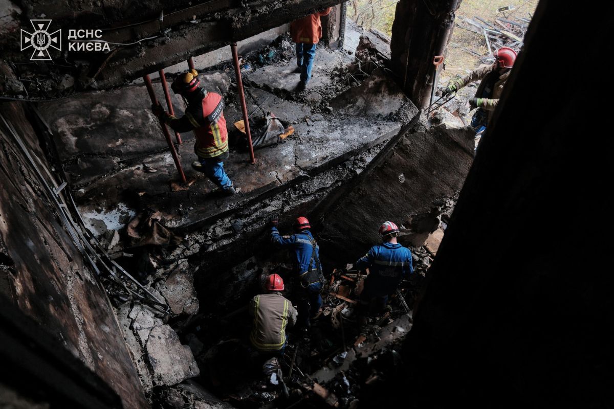 Самая тяжелая ситуация в Деснянском районе: там шахед влетел в девятиэтажку, разрушены перекрытия между этажами.