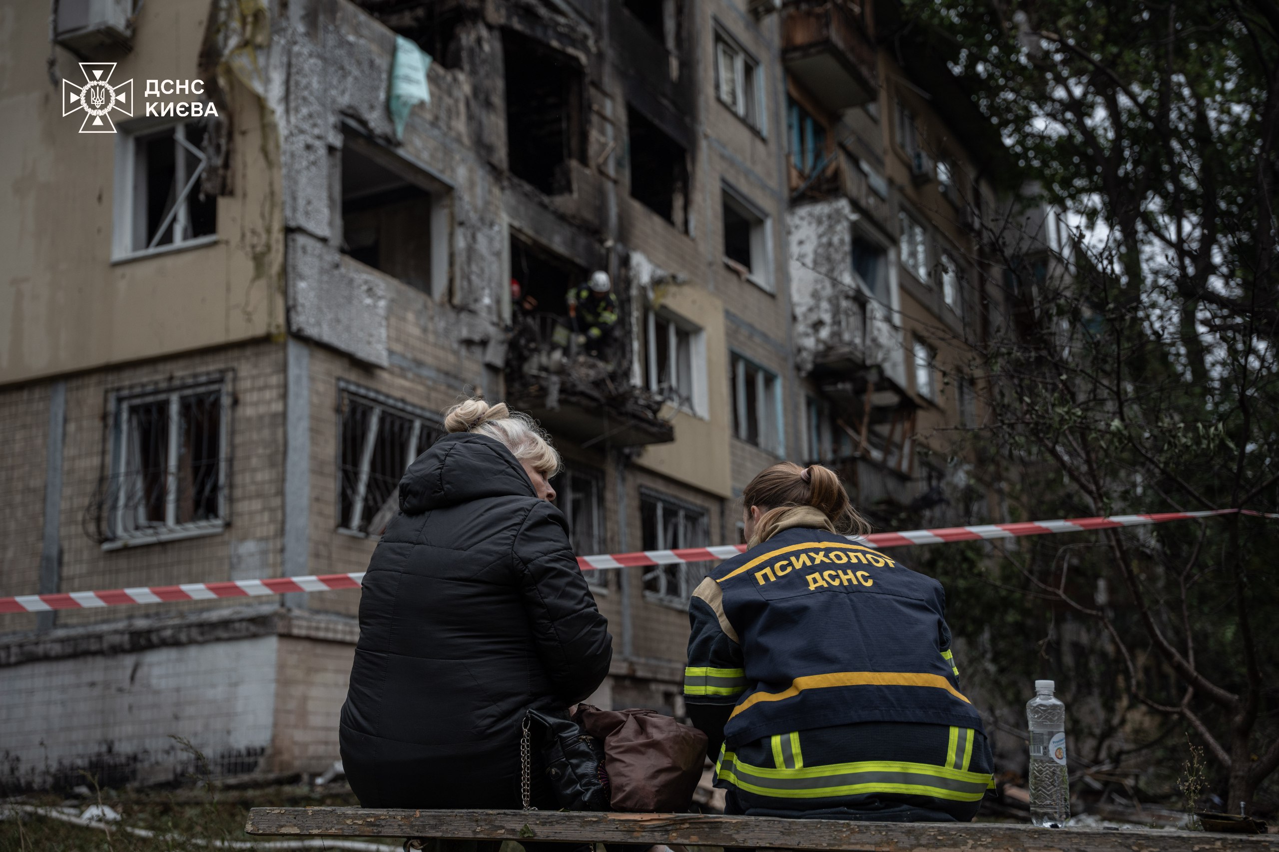 ГСЧС подчеркивает, что российская армия намеренно наносит удары по гражданским объектам в столице, подвергая опасности мирное население. Фиксация последствий продолжается, следователи полиции квалифицируют действия РФ как военное преступление.