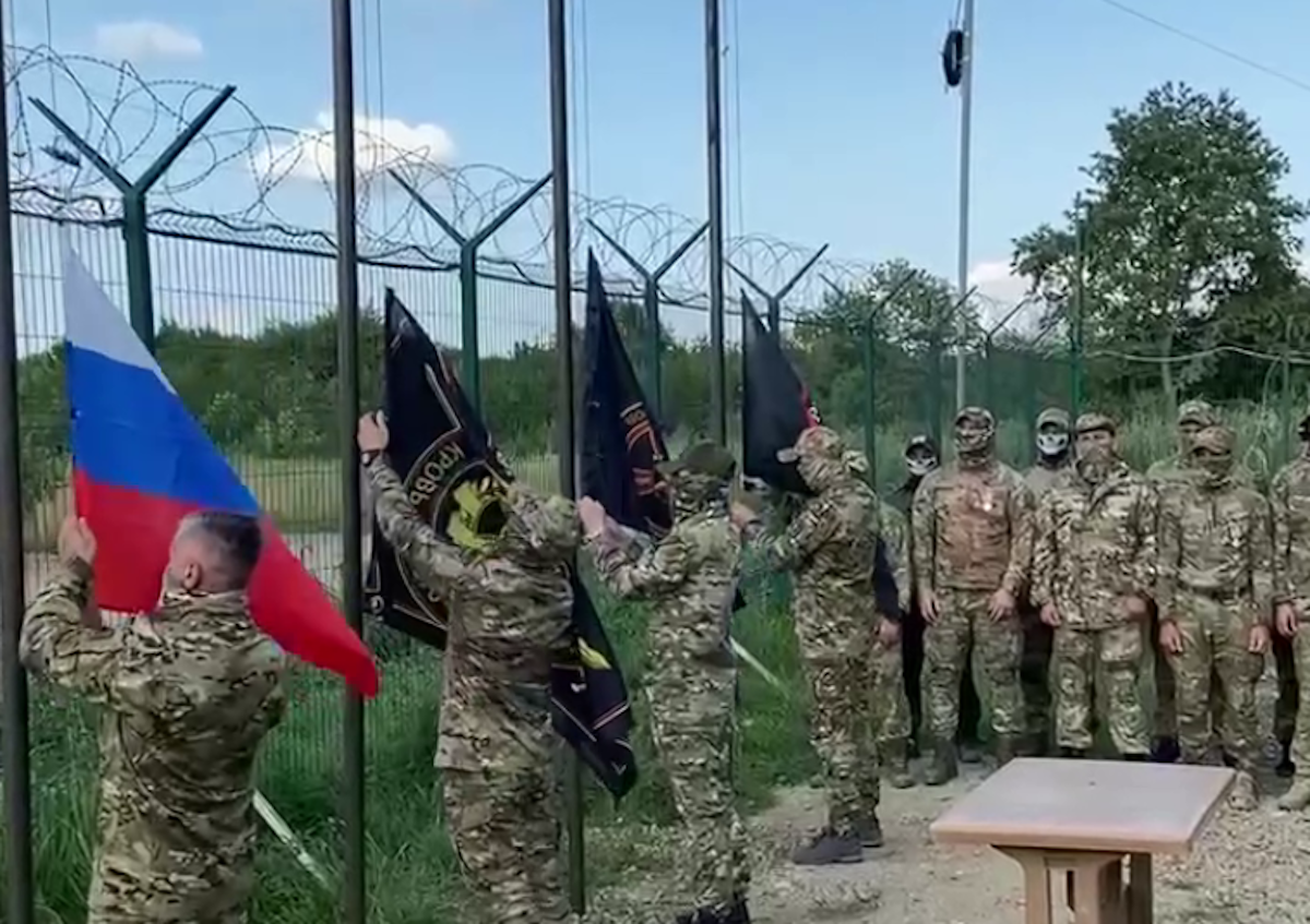 В понедельник, 17 июля, на базе ЧВК "Вагнер" на кубанском хуторе Молькино в РФ был спущен флаг террористической организации.
