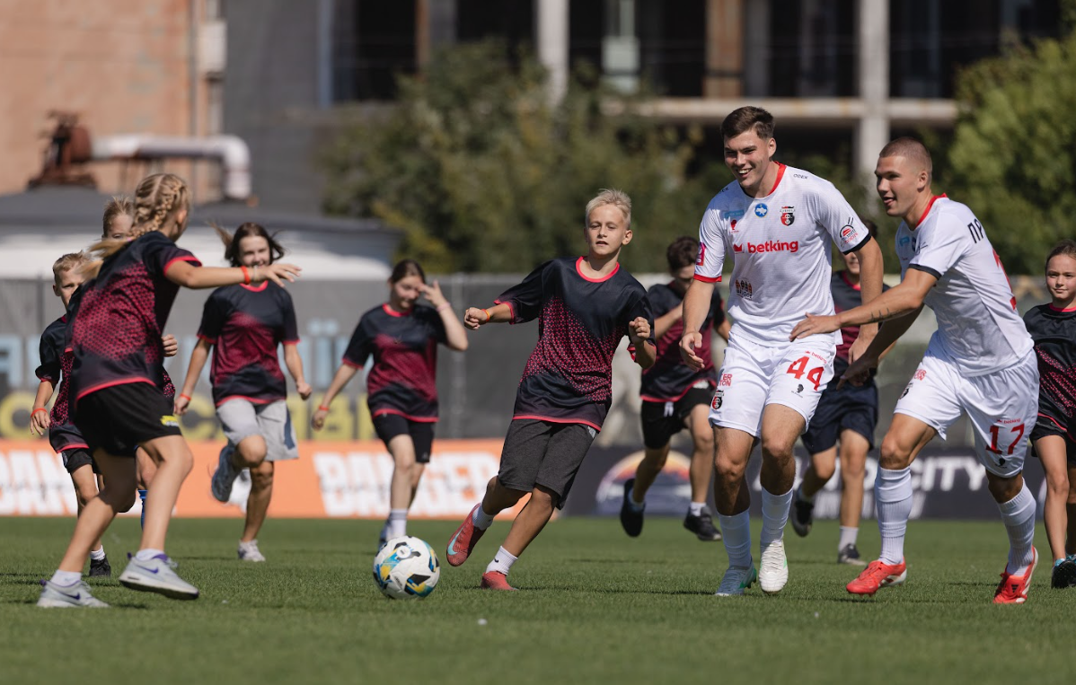 После матча дети сделали фото с футболистами, получили автографы, а также за кулисами увидели, как живет команда: посетили раздевалки, тренажерные залы и познакомились с процессом подготовки к матчам. Завершением насыщенного дня стали подарки, общий обед и большая командная фотография на память.