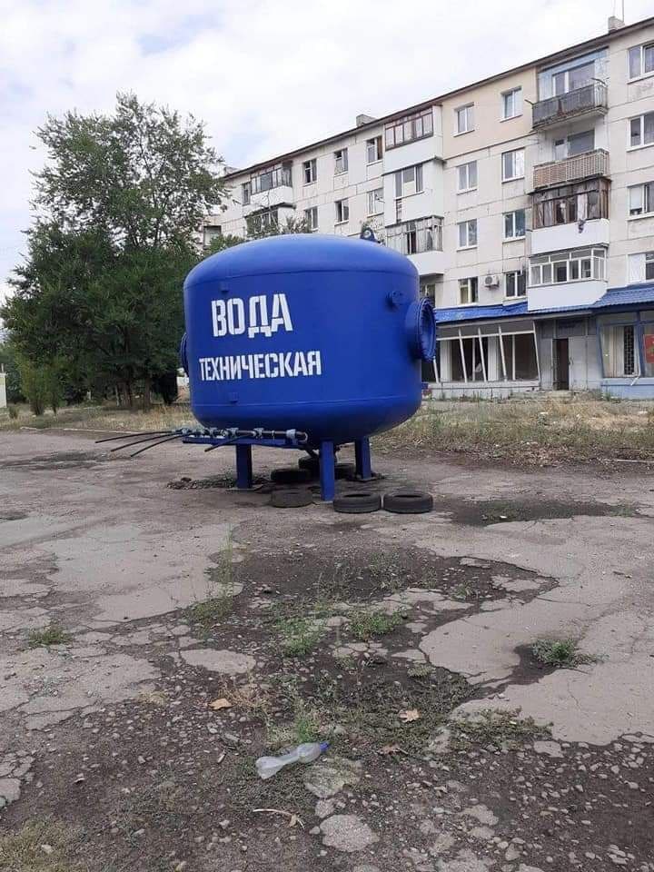 09:22 Сєвєродонецьк. За: замість сучасних лікарень, шкіл та спортивних арен - технічна вода, душ на вулиці та пересувний телевізор.