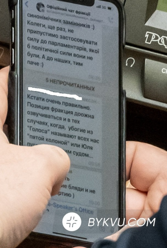 У фракційному чаті "Слуги народу" один з депутатів написав, що "неприпустимо застосовувати силу до парламентаріїв, від якої б політичної сили вони не були". Також автор повідомлення попросив використовувати синонімічні замінники.