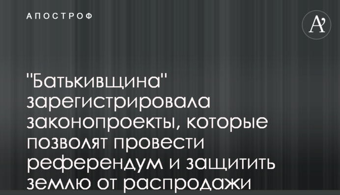 Нагадаємо, сьогодні Юлія Тимошенко звернулася від імені партії і фракції "Батьківщина" до президента з вимогою провести референдум з питання продажу землі, перш ніж виносити закон про ринок землі на голосування Верховної Ради. Юлія Тимошенко повідомила, що на виконання цих вимог фракція реєструє відповідні законопроекти.