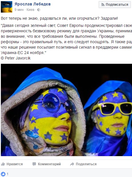 Вищевказана позиція підтверджує пропозицію Комісії ЄС надати право безвізового в'їзду для громадян Євросоюзу під час поїздок на територію України, а також для українців під час їхніх поїздок в країни Європейського союзу на термін перебування до 90 днів протягом 180-денного період