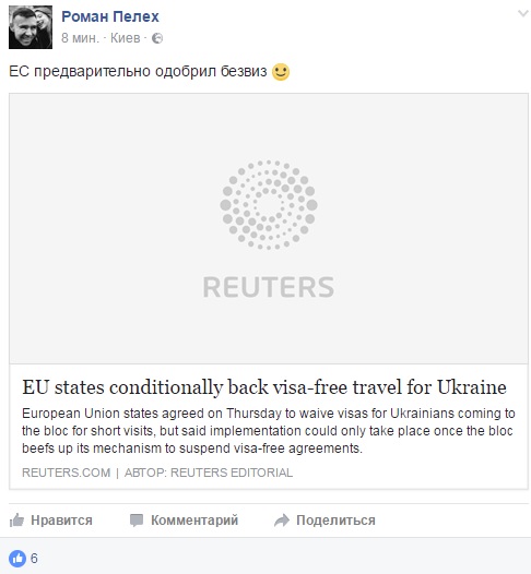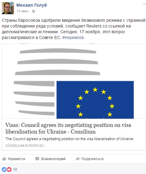 Як повідомляв "Апостроф", у жовтні президент України Петро Порошенко заявив, що Євросоюз надасть безвізовий режим для українців в листопаді.