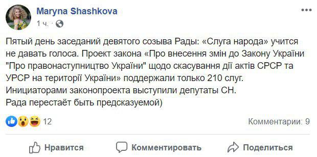 12 вересня депутати провалили голосування по законопроекту про скасування дії всіх актів СРСР і УРСР на території України.