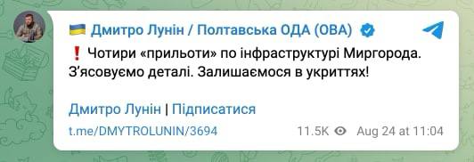 11:04 Повідомляють про 4 потужних вибухи у Миргороді.