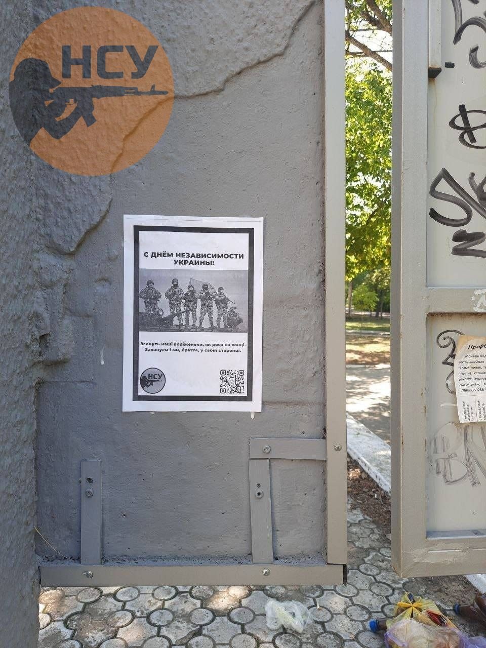16:10 Українські патріоти в Херсоні, Бердянську, Таврійську, Каховці, Новій Каховці, Енергодарі, Мелітополі, Олешках, Токмаку, Бердянську та Генічеську розвісили листівки з привітанням жителям окупованих територій, колаборантам, зрадникам і окупантам.
