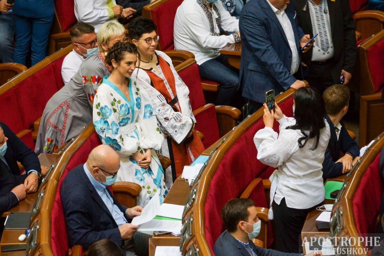 Деякі вишиті плаття дійсно дуже стильні і привертають увагу колег, але все ж велика частина нардепів прийшла на засідання в класичних костюмах.