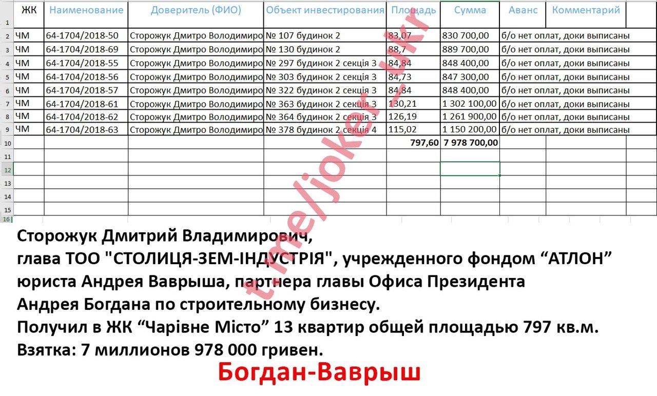 Також він опублікував інформацію про те, що майже на 8 мільйонів гривень житло було виділено ще одному партнеру Богдана - Дмитру Сторожуку.