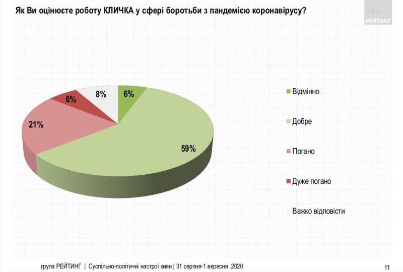 Також дві третини киян на відмінно або ж добре оцінили роботу Віталія Кличка у сфері боротьби з пандемією коронавірусу.