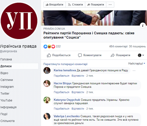 Ми перевірили цю інформацію. Виявилось, що "тролі" працювали, зокрема, в коментарях під постами видання "Українська правда". Під постом з новиною "Рейтинги партій Порошенка і Смешка падають" вони просували меседжі за партію Гриценка "Громаднська позиція" та поливали брудом партію "Сила і Честь" та Ігоря Смешка особисто. Наприклад, там були такі коментарі (стилістика та мова оригіналу): "Смешко предатель Украины. Кремлю служит овчарка паршивая"; "Да пусть падают рейтинги этих двух чмошников. А других нормальных, как Гриценка например, пусть подымаются", "Смешка вообще не должны били допускать до выборов. Это же бред. Пропутиновских агентов выставлять на выборы"; "Смішко агент кремля , який в парламенті буле лише знищувати державу".Ці меседжі також підтверджують й іншу частину переписки – перелік тем та меседжів, які "тролі" мають використовувати в своїй роботі. Наприклад, координатор "тролів" під іменем Сергій Казик навів такі меседжі (мова оригіналу):