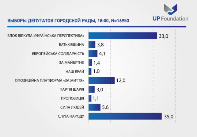 За даними, отриманими за результатами опитувань близько 17 тисяч виборців, партія "Слуга народу" перемагає на виборах до міської ради: за неї віддали свої голоси близько 35% криворіжців. На другому місці - Блок Вілкула з результатом 33%.