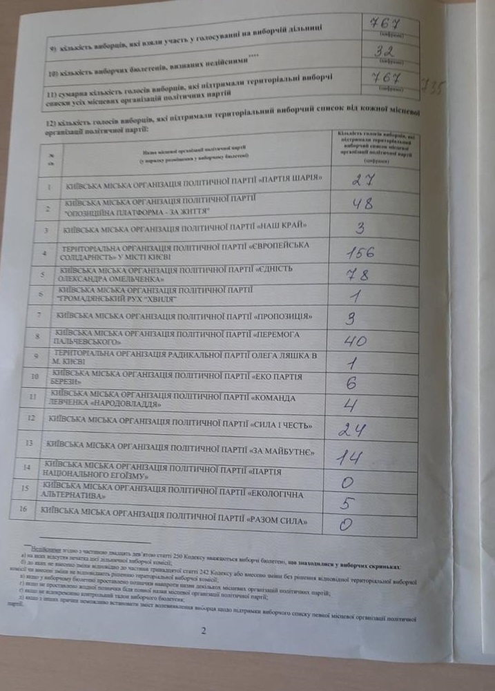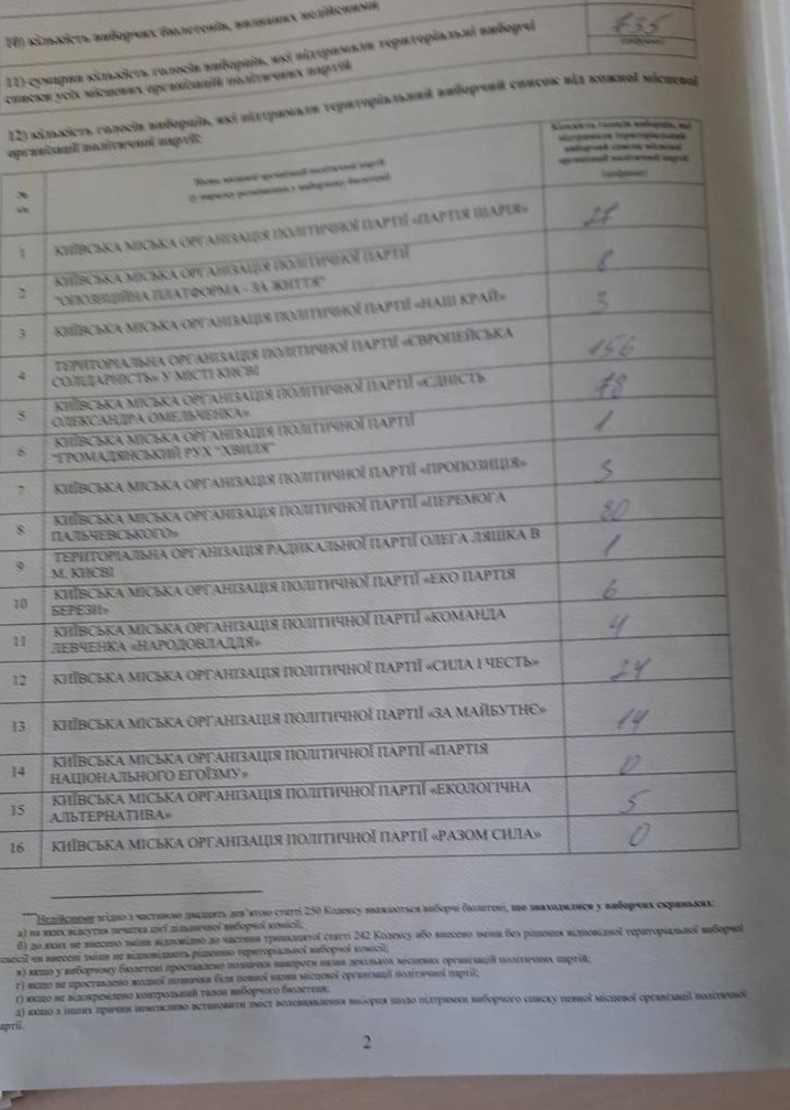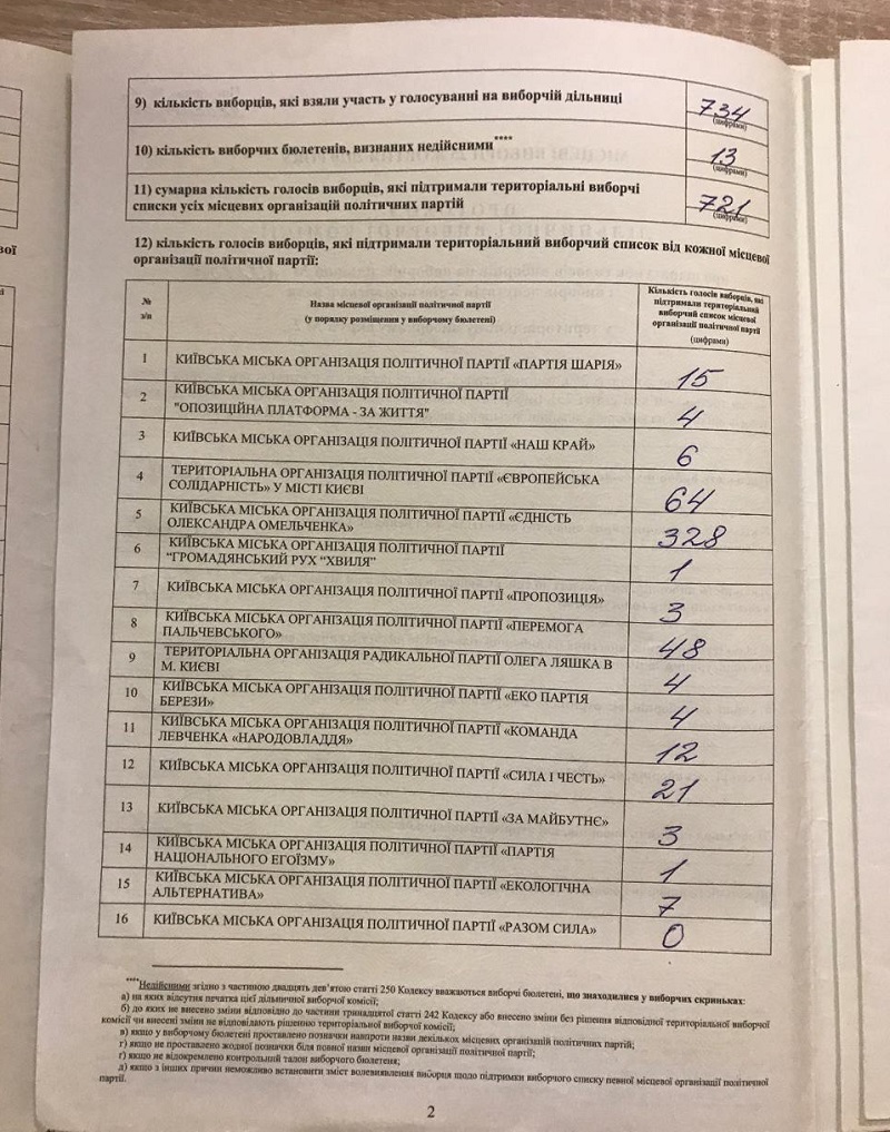 Так, у розпорядженні журналістів виявилися два протоколи ДВК 800133 в Дарницькому районі Києва, один з яких був зроблений до перерахунку голосів, а другий після.