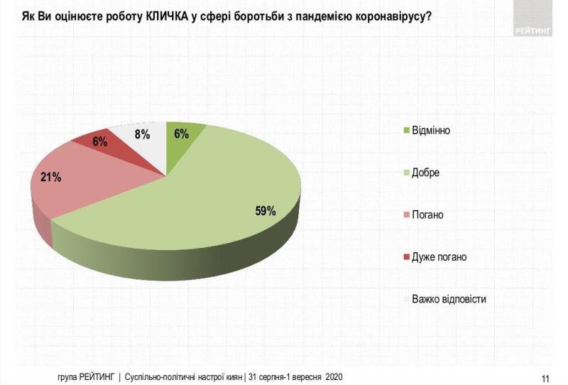 Дві третини киян на відмінно або ж добре оцінили роботу Віталія Кличка у сфері боротьби з пандемією коронавірусу.