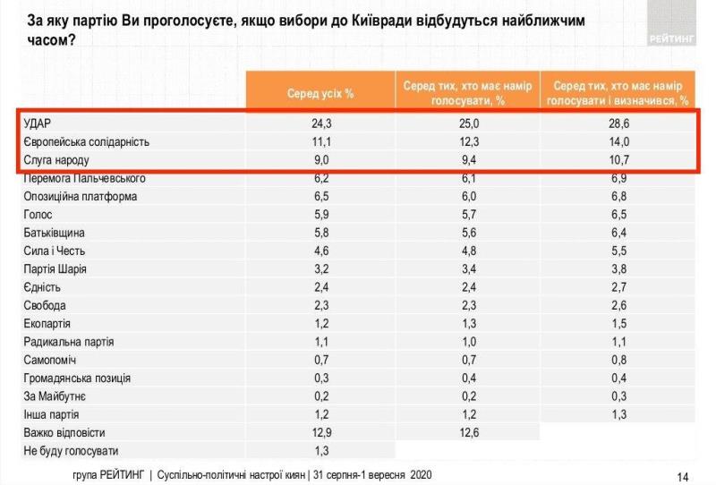 "69% опитаних висловили однозначну готовність взяти участь у виборах мера та міської ради у жовтні 2020 року. Найвищий рівень мобілізації – серед найстарших опитаних", – підсумовує "Рейтинг".