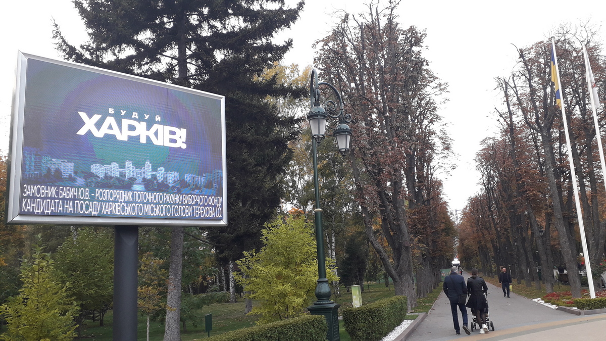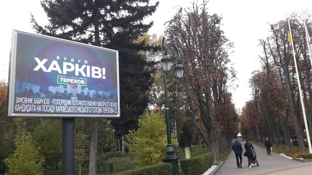 До цього, 30 жовтня, "Опора" зафіксувала сітілайти та бігборди з прихованою агітацією на користь Ігоря Терехова, кандидата від партії "Блок Кернеса - Успішний Харків". Стилістика рекламних матеріалів ідентична тій, що використовувалася в агітаційних матеріалах на користь Терехова під час виборчої кампанії. Розміщення подібних матеріалів заборонено у так званий "день тиші".