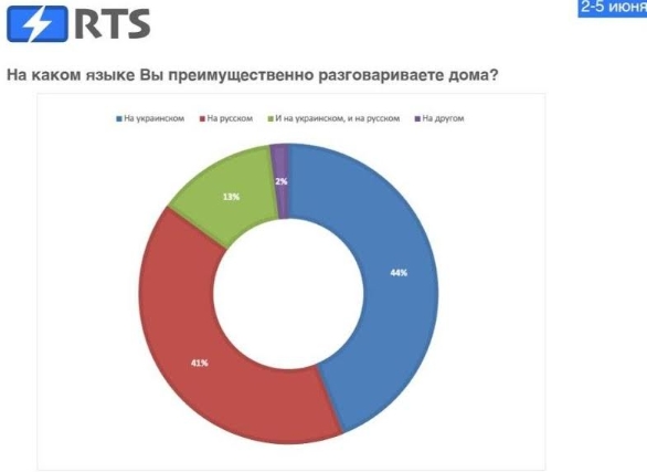 Відповіді на питання "Якою мовою ви переважно розмовляєте вдома?" розподілилися наступним чином: 44% опитаних переважно спілкуються вдома українською мовою, 41% - російською, 13% - обома мовами відразу і 2% - іншою мовою.