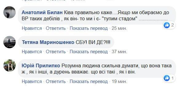 "Три класи. Буквар курив", "Потрібно швиденько лікувати цю особистість", "Палата номер шість", "СБУ! Ви де?" - коментують цей вислів нардепа Киви в соцмережі.