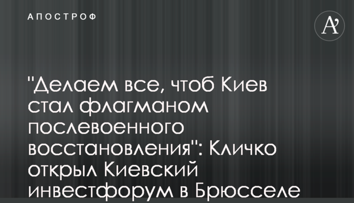 Мер Києва Віталій Кличко та мер Брюсселя Філіп Клоз відкрили Київський інвестиційний форум, який другий рік поспіль відбувається в Брюсселі. Захід присвячений повоєнному відновленню та інноваційному розвитку української столиці. Також на форумі Київ та Брюссель підпишуть угоду про побратимство міст.