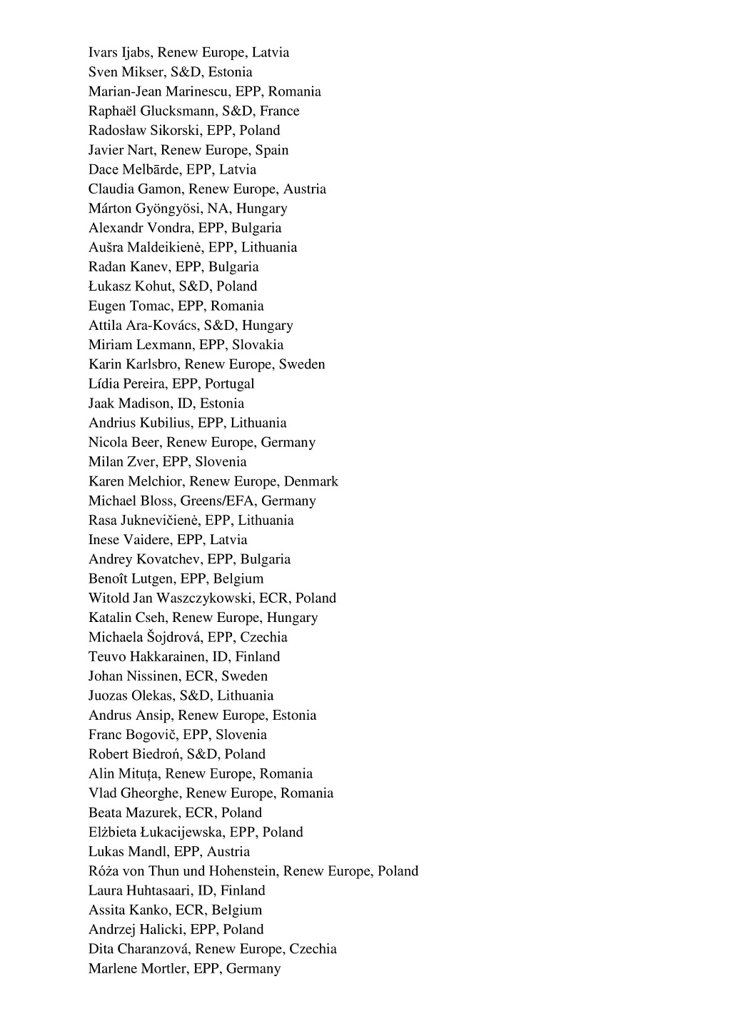 Свої підписи під заявою поставили Євродепутат від Німеччини Міхаель Галлер (EPP), Євродепутат від Польщі Влодзімеж Цимошевич (S&D), Євродепутат від Польщі Анна Фотига (ECR), Євродепутат від Франції Наталі Луазо (Renew Europe), Євродепутат від Швеції Шарль Веймер (ECR), Євродепутат від Естонії Урмас Пает (Renew Europe), Євродепутат від Латвії Іварс Іябс (Renew Europe), Євродепутат від Естонії Свен Міксер (S&D), Євродепутат від Франції Рафаель Глюксманн (S&D), Євродепутат від Литви Андрюс Кубілюс (EPP), Євродепутат від Німеччини Міхаель Блосс (Greens/EFA), Євродепутат від Угорщини Аттіла ара Ковач (S&D) та багато інших.