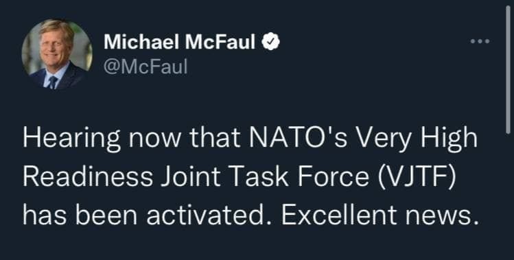 Слід зазначити, що Майкл Макфол згадав про конкретну групу Сил швидкого реагування, а саме "Об'єднану оперативну групу підвищеної готовності" (Very High Readiness Joint Task Force, VJTF), що складається з сухопутної бригади чисельністю близько 5000 осіб, частин повітряної та морської підтримки, а також сил спеціального призначення. До складу групи може бути додано дві додаткові бригади до 30 000 осіб.