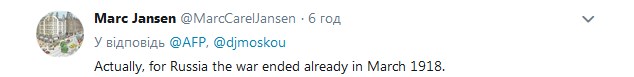 Користувачі також зауважують, що для Росії Перша світова закінчилася ще у березні 1918 року.
