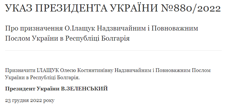На практиці початок цієї процедури працює інакше. Часом саме Офіс президента ставить МЗС до відома: послом має бути ось ця людина й рішення про призначення Олесі Ілащук ухвалила саме Банкова, стверджує ЄвроПравда з посиланням на власні джерела.