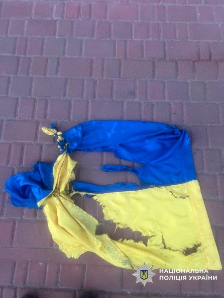 Встановлено, що 43-річний місцевий мешканець перебуваючи у стані алкогольного сп"яніння зірвав український стяг, порвав його та почав топтати.