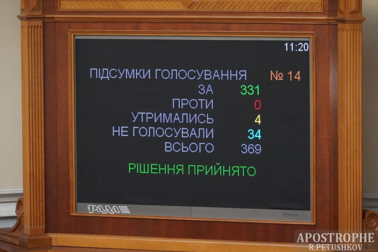 "За" проект постанови проголосував 331 народний депутат. Не голосували взагалі члени "ОПЗЖ" - 21 особа відмовилася від участі у голосуванні.