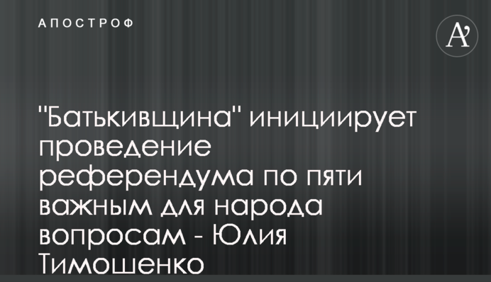 Голова "Батьківщини" повідомила що спільно з командою разом із людьми ініціює проведення референдуму з п"яти питань. Вона закликатиме громадян сказати: