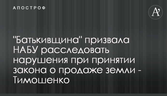 Юлія Тимошенко та депутати "Батьківщини" звернулися до Національного антикорупційного бюро України із заявою, у якій вказали на конфлікт інтересів та корупцію в Комітеті Верховної Ради з питань аграрної політики під час розгляду закону про продаж землі. Партія вимагає від НАБУ порушення кримінальної справи та призупинення розгляду земельного закону.