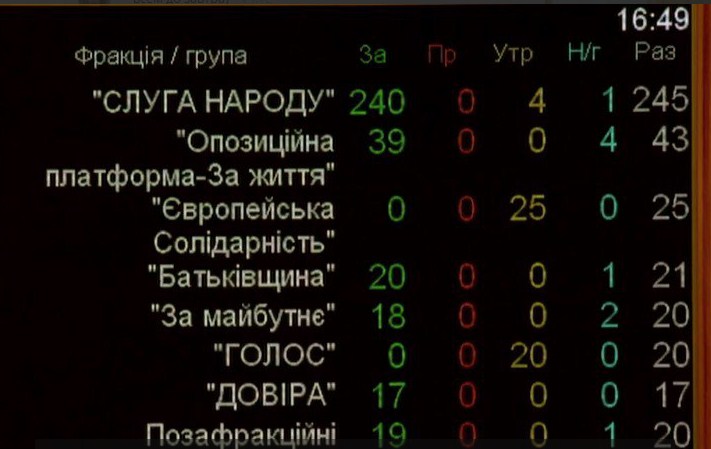У той же час утрималися від голосування 25 народних депутатів "Європейської солідарності" і 20 представників фракції "Голос".