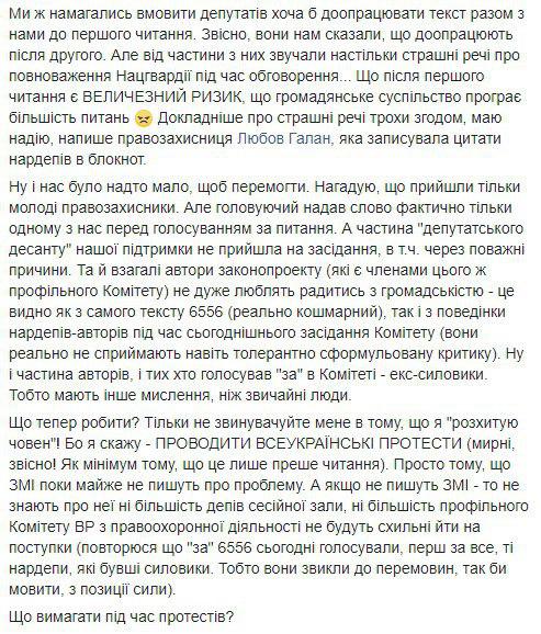 "Так, сумно ,скоро будуть закони як в Росії. Скажіть, як знаєте ,що робить?", "А як би ото нацгвардії обяснить, шо вони присягу дають не Геращенку з Порошенком, а Українському народу. Та обяснить доходчіво", - пишуть користувачі мережі.