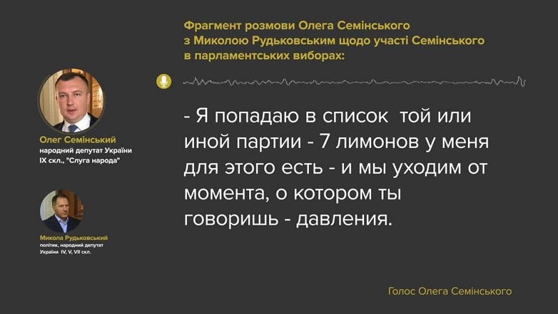 У коментарі "Суспільному", Семінський визнав, що розмова між ним і екснардепом Миколою Рудьковським, зафіксований на запису, дійсно мав місце.