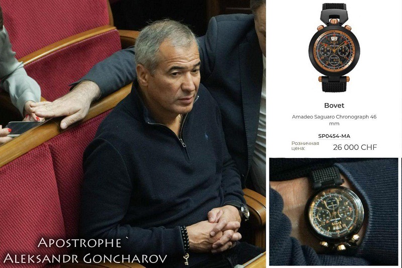 Так, на руці у представника фракції "Опозиційна платформа - За життя", члена комітету ВРУ з організації державної влади і містобудування був помічений годинник фірми Bovet. Вартість цього аксесуара, згідно відкритих даних - 26 тисяч швейцарських франків або 644 258 грн. Таким чином депутат надів на роботу годинник, який коштує більше ніж 150 українських прожиткових мінімумів.