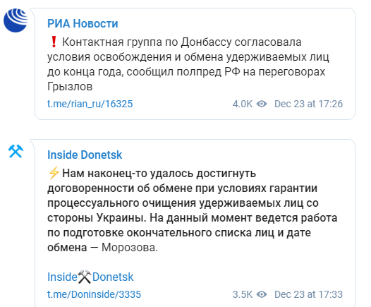Пізніше інформацію про обмін підтвердила також прес-секретар представника України в ТГК, Дарка Оліфер.