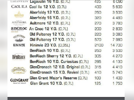 Згідно з меню, салати коштують в закладі від 100 грн до 350 грн. Гарячі страви - від 200 до 1850 грн. Також високі ціни на алкоголь: коктейлі від 200 до 1500 грн, горілка від 1000 до 3000 грн за пляшку, а віскі від 1610 до 35000 грн за пляшку.