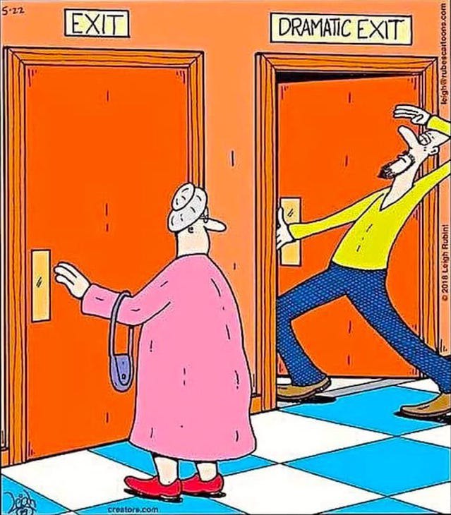 На карикатурі можна побачити героя, зовні дуже схожого на прем'єр-міністра. Він намагається вийти в двері, але не робить останній крок.