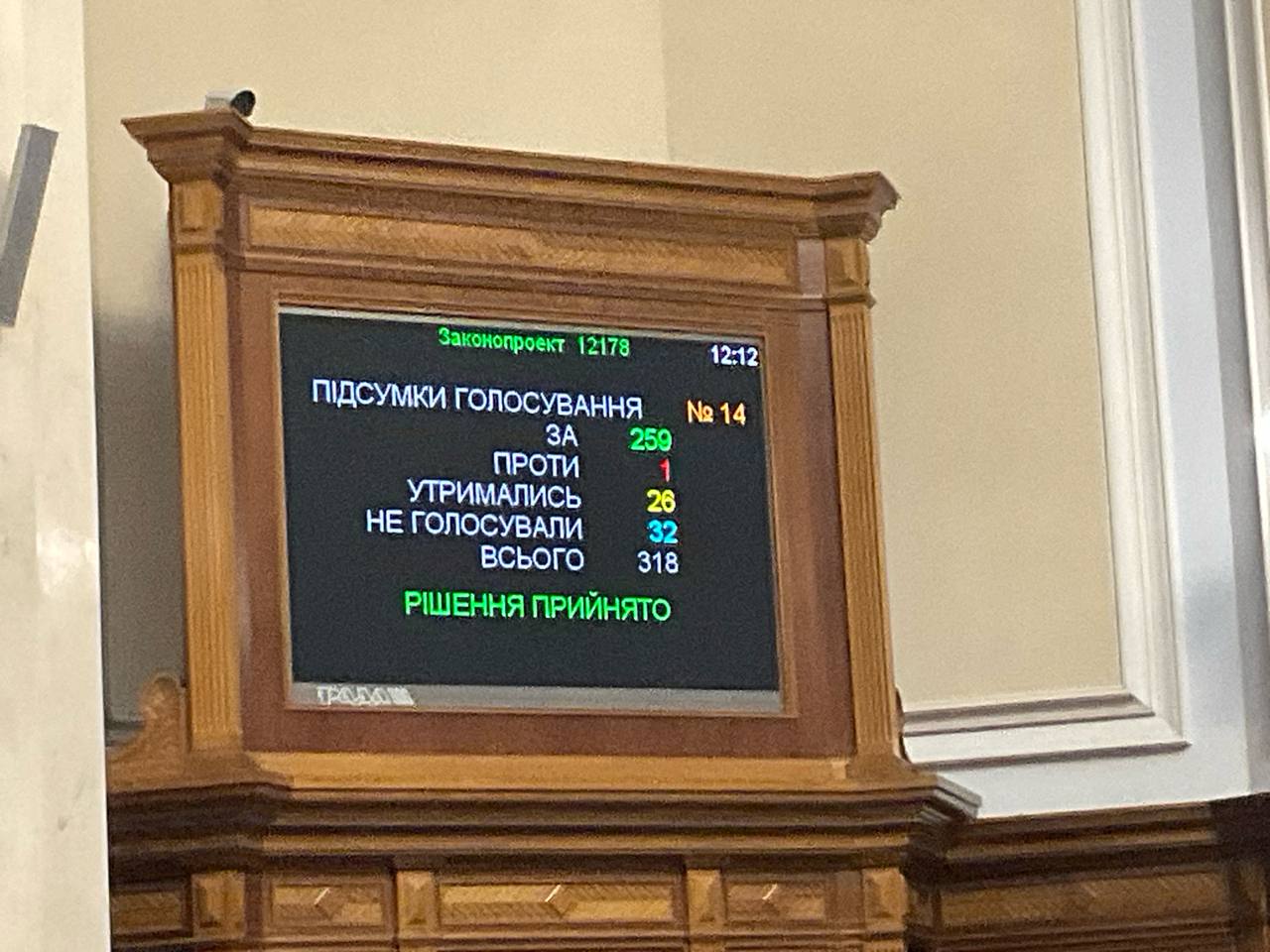 "За" проголосували 259 депутатів.