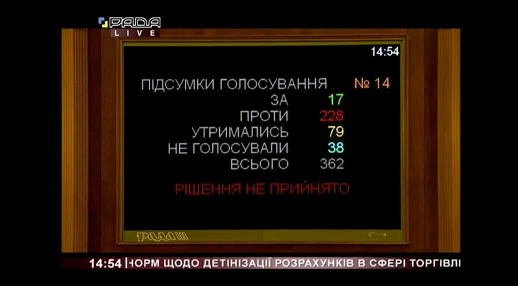 Як свідчить табло Верховної Ради, цю пропозицію підтримали тільки 17 народних депутатів.