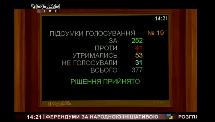 За проєкт закону №3612 від 9 червня 2020 року, внесений президентом України Володимиром Зеленським, проголосували 252 народних депутатів.