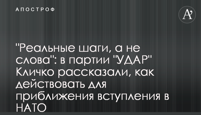 "Стратегія вступу України до НАТО має будуватися на реальних кроках, а не словах. Ключовим в євроатлантичній інтеграції є чітке виконання Україною вимог вступу в НАТО та досягнення критеріїв членства. Ми маємо досягти рівня стандартів Альянсу, щоб нас запрошували та хотіли там бачити, а не ми напрошувалися", - написала представниця "УДАРу".