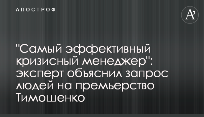 "Перше місце у Юлії Тимошенко. Серед респондентів, які вважають за потрібне змінити прем"єра, кожен п"ятий вважає, що з колишніх глав уряду саме вона найкраще впорається з виведенням України з кризи. Перше місце Тимошенко цілком логічне і зрозуміле. Будучи віцепрем"єром з енергетики, пізніше прем"єр-міністром, вона проявила себе як ефективний антикризовий менеджер, який жорстко і безкомпромісно вирішував завдання, що стояли перед країною", – нагадав політексперт.