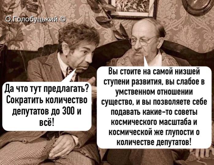 Для фотожаби був використаний кадр з культового радянського фільму "Собаче серце", на якому професор Преображенський докоряє за голосування в Раді перетвореному з собаки громадянину Шарікову перефразованою цитатою з фільму: "Ви стоїте на найнижчому щаблі розвитку, ви слабка в розумовому відношенні істота, і ви дозволяєте собі подавати якісь поради космічного масштабу і космічної ж дурості про кількість депутатів".