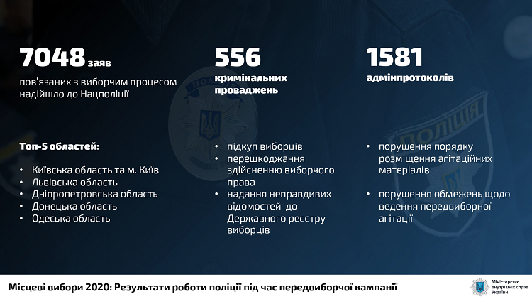 МВС разом з Центральною виборчою комісією та "Громадянською мережею "ОПОРА" впродовж зазначеного періоду реагували на всі звернення громадян і перевіряли всі сигнали щодо порушень. За словами міністра, серед викритих правопорушень чимало таких, що мають ознаки кримінальних злочинів.
