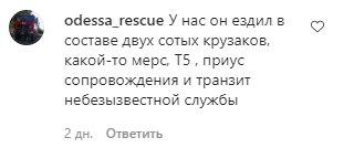 "У нас він їздив у складі двох сотих крузак, якийсь мерс, Т5, пріус супроводу і транзит відомої служби", - пише користувач з Одеси.