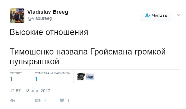 Нагадаємо, відповідаючи на питання про те, як Україна буде розплачуватися в разі програшу "Нафтогазу" в Стокгольмському арбітражі "Газпрому", Гройсман заявив, що доведеться передати РФ Тимошенко замість грошей.